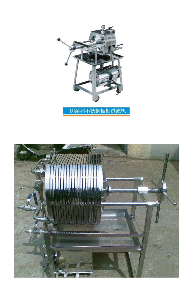 本機(jī)為不銹鋼多層框板式過(guò)濾機(jī),適用于濃度50%以下粘度較低,含渣量較少的液體作密封過(guò)濾以達(dá)到提純、滅菌、澄清等精濾和半精濾的要求,直接選用微孔濾膜,可不經(jīng)過(guò)微孔薄膜過(guò)濾器過(guò)濾可達(dá)到無(wú)菌過(guò)濾之目的。